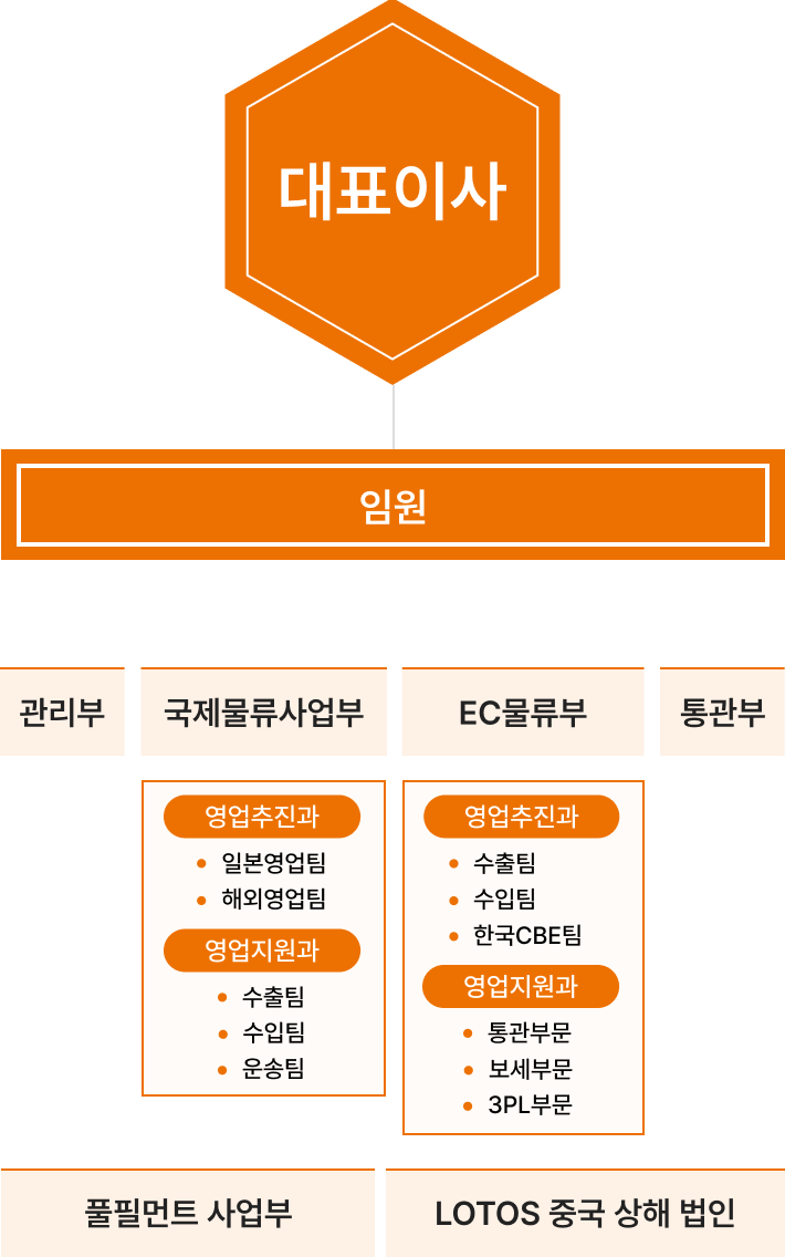 | 주 요 사 업 | 국제물류주선, 전자상거래 특송(E-commerce Express), 수출입통관, 풀필먼트, 화장품 제조-판매업, 보세창고 (CFS) 및 창고업 운영 |